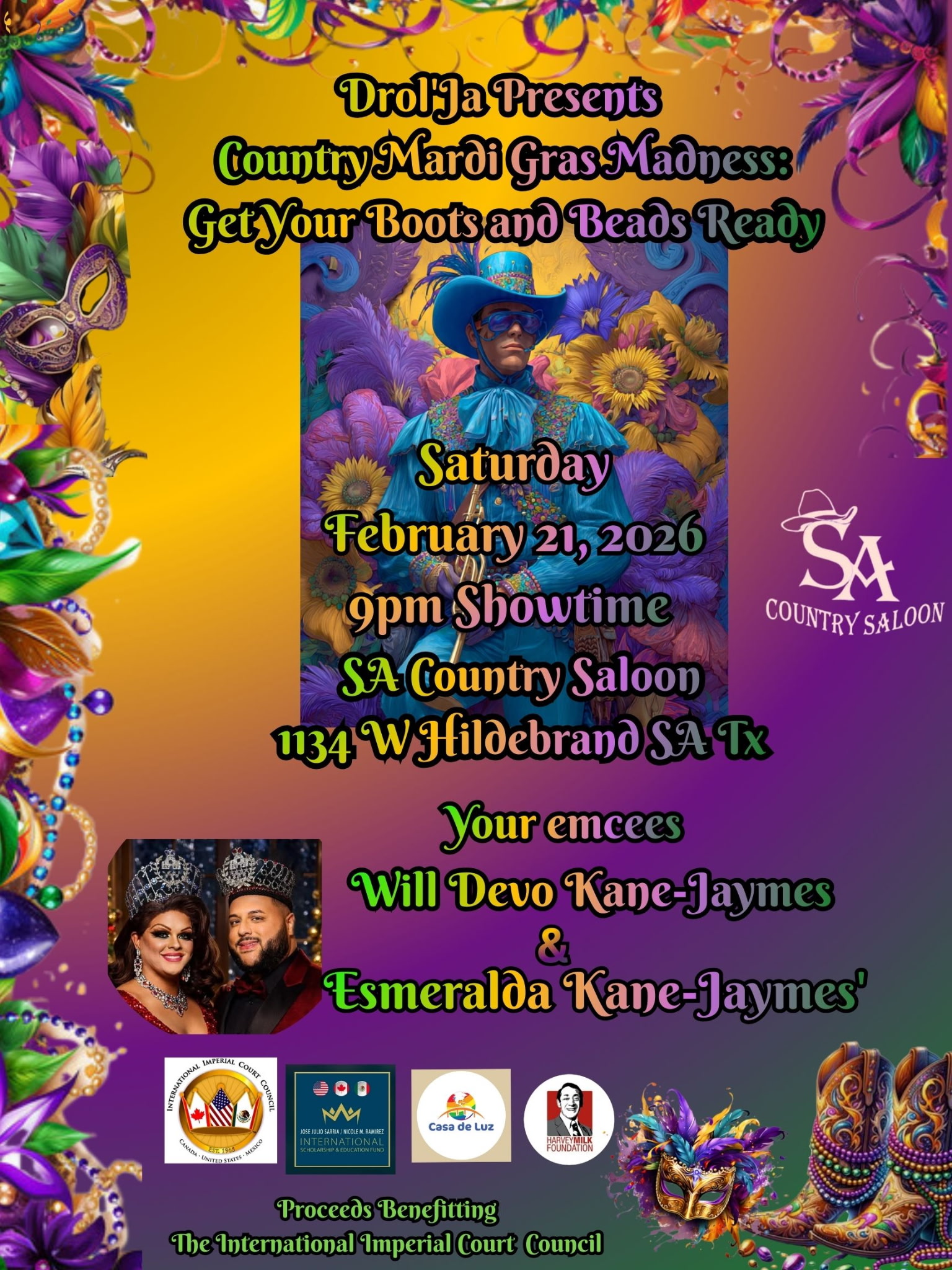 Drol’Ja Presents Country Mardi Gras Madness: Country meets Mardi Gras in this unforgettable night of drag, music, and fun!